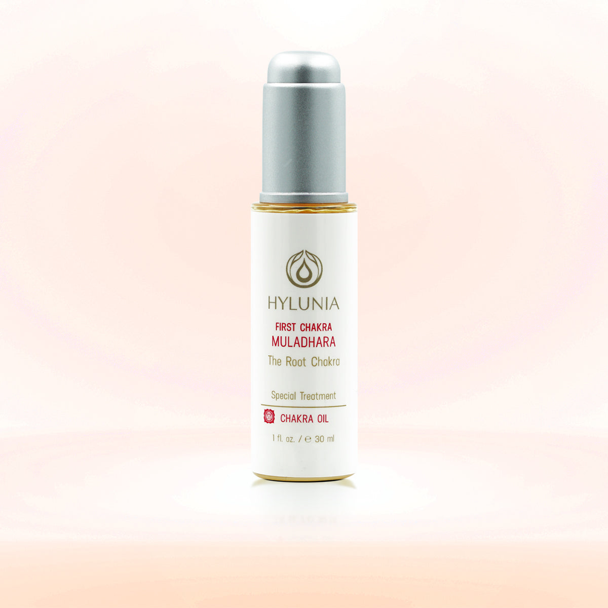 The first chakra is called MULADHARA or ROOT chakra. It is located at the base of the spine in the tailbone area. This oil is a blend of Frankincense, Sesame and Ylang-ylang essential oils and helps to activate the root chakra.