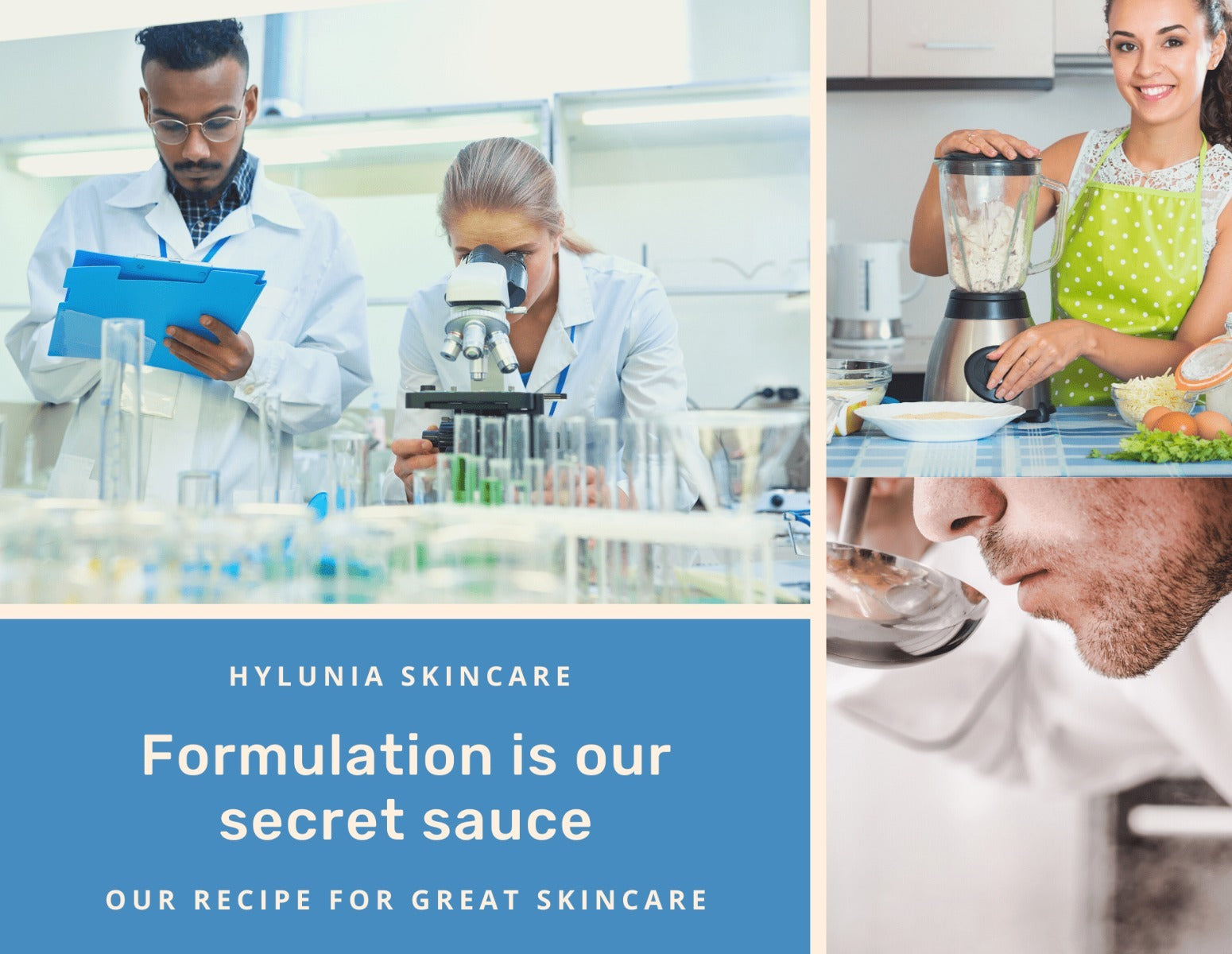 Many company founders say that they just dreamt up the product formulation and created the product by throwing a bunch of fruits and vegetables together in their kitchen blender as if they were making their morning smoothie! Yeah, right! Ironically, the first batch of Hylunia was made in a kitchen blender but it was done by scientists who knew what they were doing.